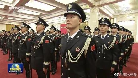 当日在庄严肃穆的人民大会堂,习近平总书记向人民警察授旗,三百余名身姿挺拔的人民警察身着人民警察礼服——