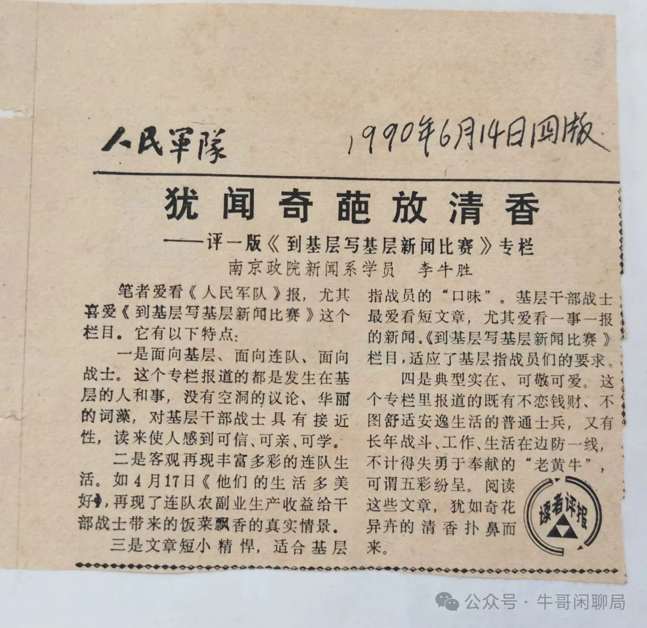 (原文刊在人民军队 1990年6月14日四版)