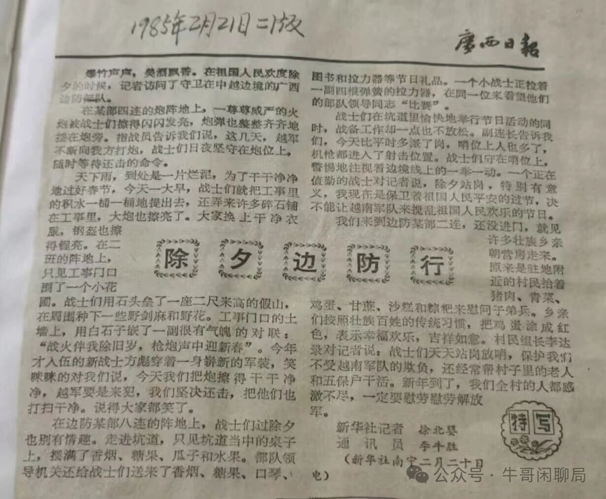 爆竹声声,美酒飘香。在祖国人民欢度除夕的时候,记者访问了守卫在中越边境的广西边防部队。