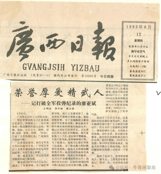 5月21日。广州军区沙河上元岗射击场。军区军事训练尖子汇报表演正在进行。投弹场上,一名中等身材,脸庞黝黑的战士出场。举弹、助跑、五步交叉、瞪腿、扭腰、送胯、转体、挥臂,“82米!打破了全军投弹纪录!”报弹员兴奋地叫喊。