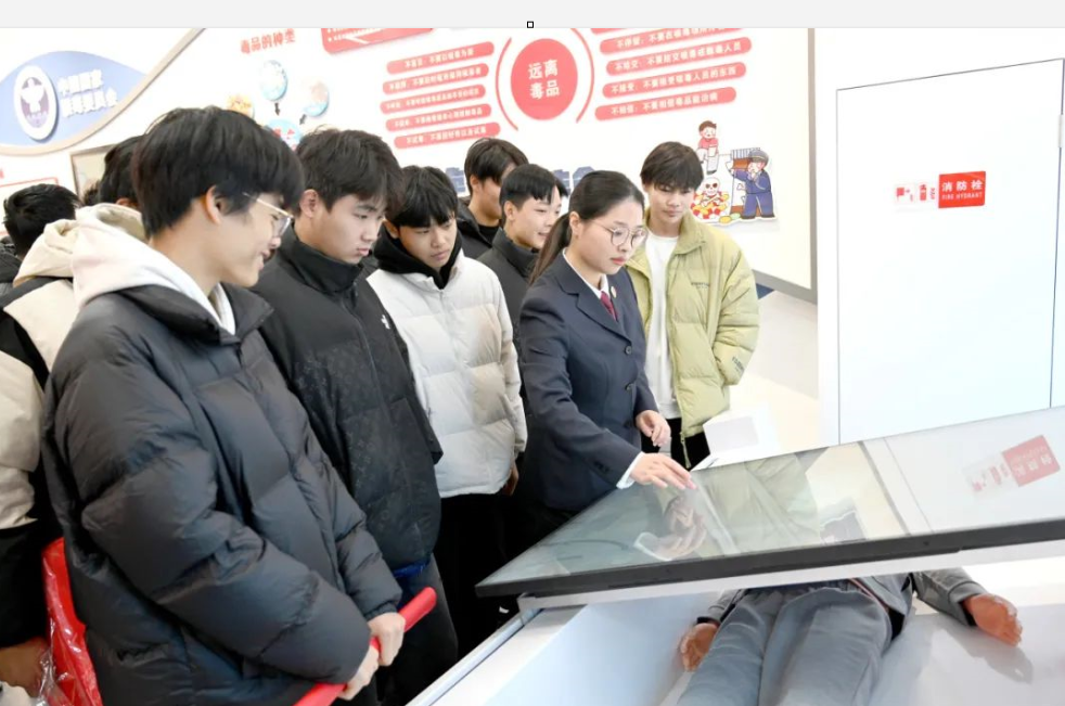 兰考县检察院干警在“焦桐花开”未成年人保护中心为同学们讲解禁毒知识并现场演示。