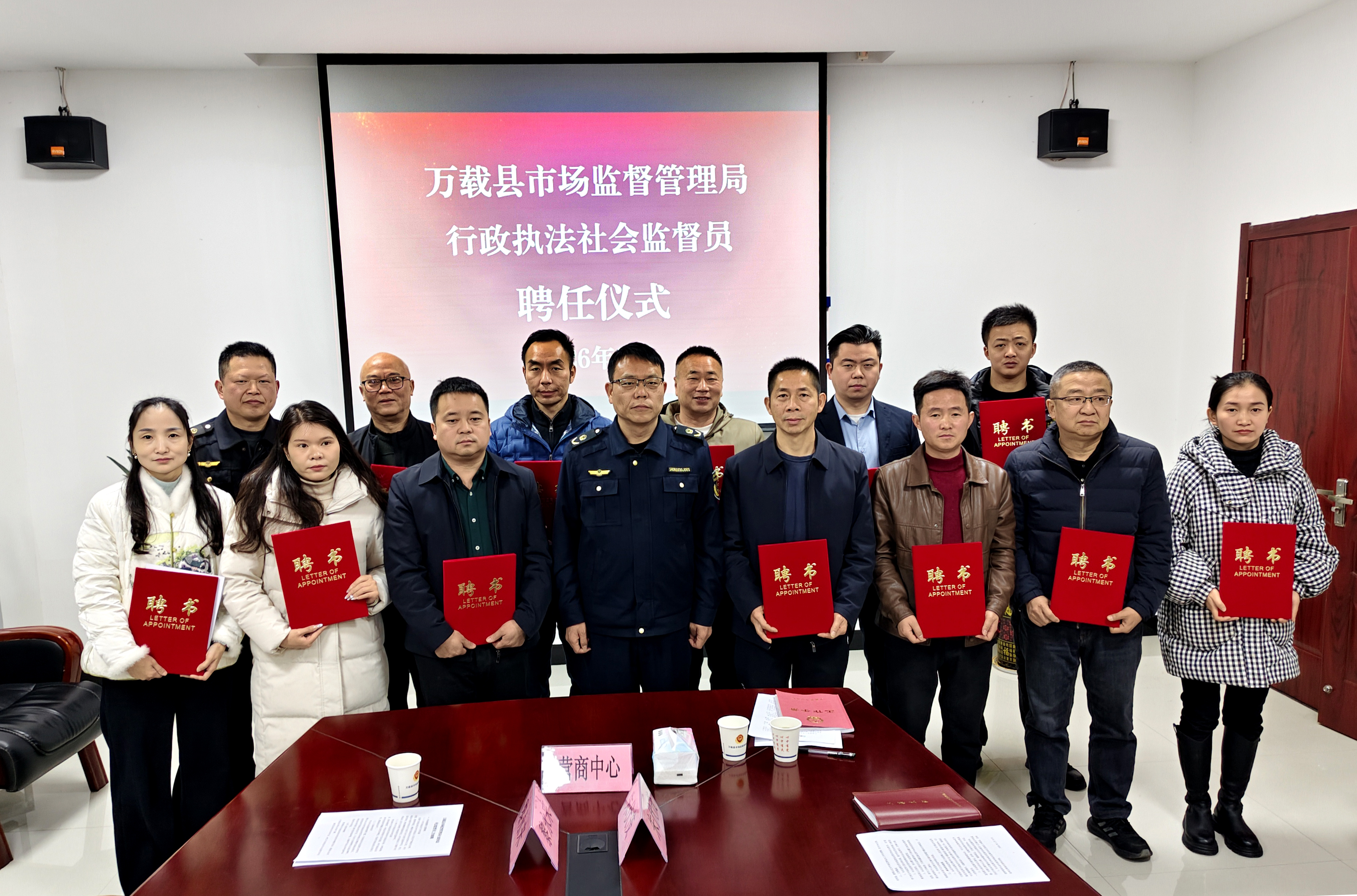 为拓宽社会监督渠道,凝聚市场监管合力,万载县市监局深入推进“五一”阳光执法监督。2月10日,万载县市监局举行行政执法社会监督员聘任仪式,正式聘请12名来自不同行业的社会人士担任市场监管行政执法社会监督员。此举旨在推动市场监管行政执法从“机关组织监督”向“社会协同治理”转变,构建“人人关心、人人参与”的监督新格局。
