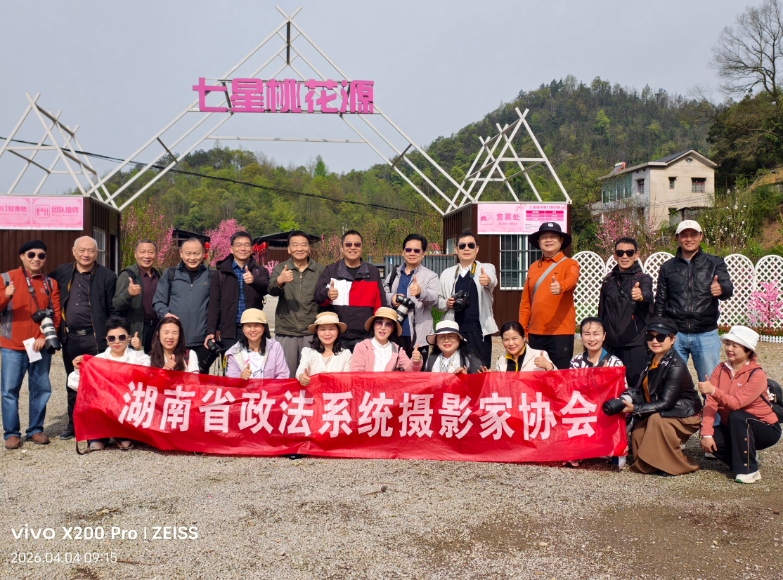 2026年4月4日,春意正浓。湖南省政法系统摄影分会组织会员前往湘潭市岳塘区昭山镇七星桃花源,开展为期一天的赏花拍摄活动。分会会长饶力明带队,来自全省公安、检察、司法行政、监狱、戒毒等单位的20名摄影骨干参加活动。
