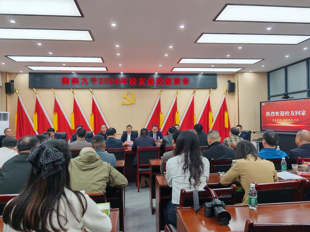 2026年4月6日,衡南九中校园春意盎然、温情满溢,以“九中少年时,同窗再相逢”为主题的清明校友返校活动隆重举行。各地校友相约重返母校,重温青春岁月,再续师生情谊,共话学校发展新篇。本次活动由学校党总支牵头组织,衡南县教育局党组书记、局长邱清毅、学校党总支书记、校长黄先桂及学校全体领导班子成员、历届校友及部分在校师生代表共同参加活动。