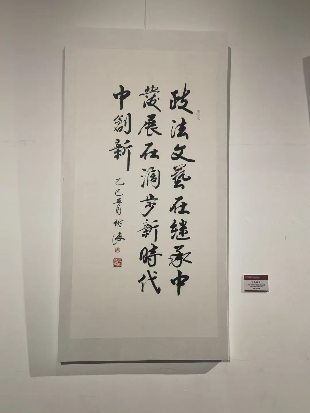 诗词展区更是才情涌动。一首七律诗,将“红心向党”的坚定信念与“湘水情深”的为民情怀巧妙对仗;一首法治颂则在词牌中融入了新时代法治建设的豪情壮志。这些作品既展现了政法干警的文化素养,更彰显了他们将红色传统融入法治实践的精神追求。