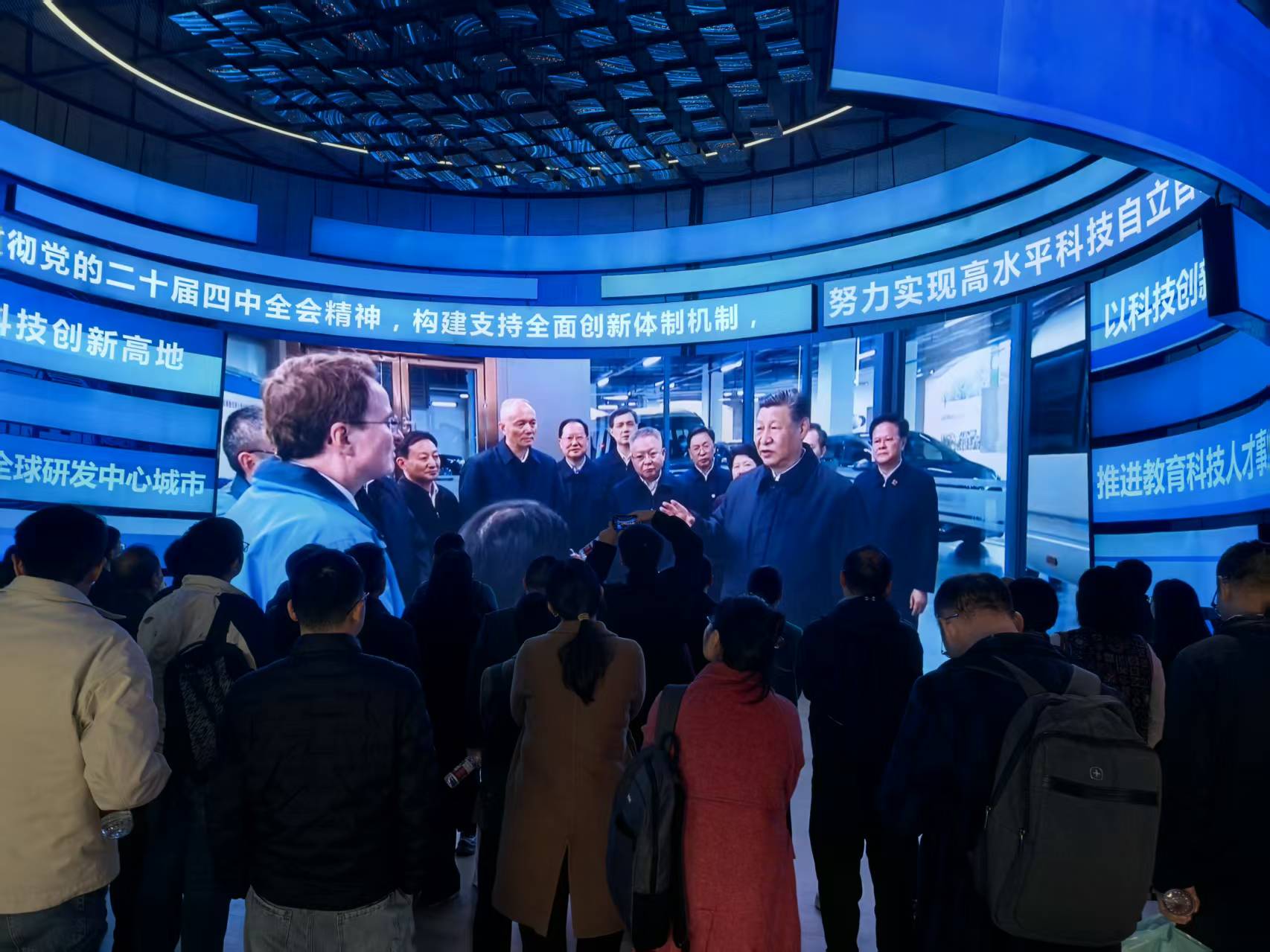 会议第一阶段为现场调研。参会代表分乘两辆大巴,依次走访了“长沙智谷·数字空间站”与“万兴科技集团股份有限公司”。