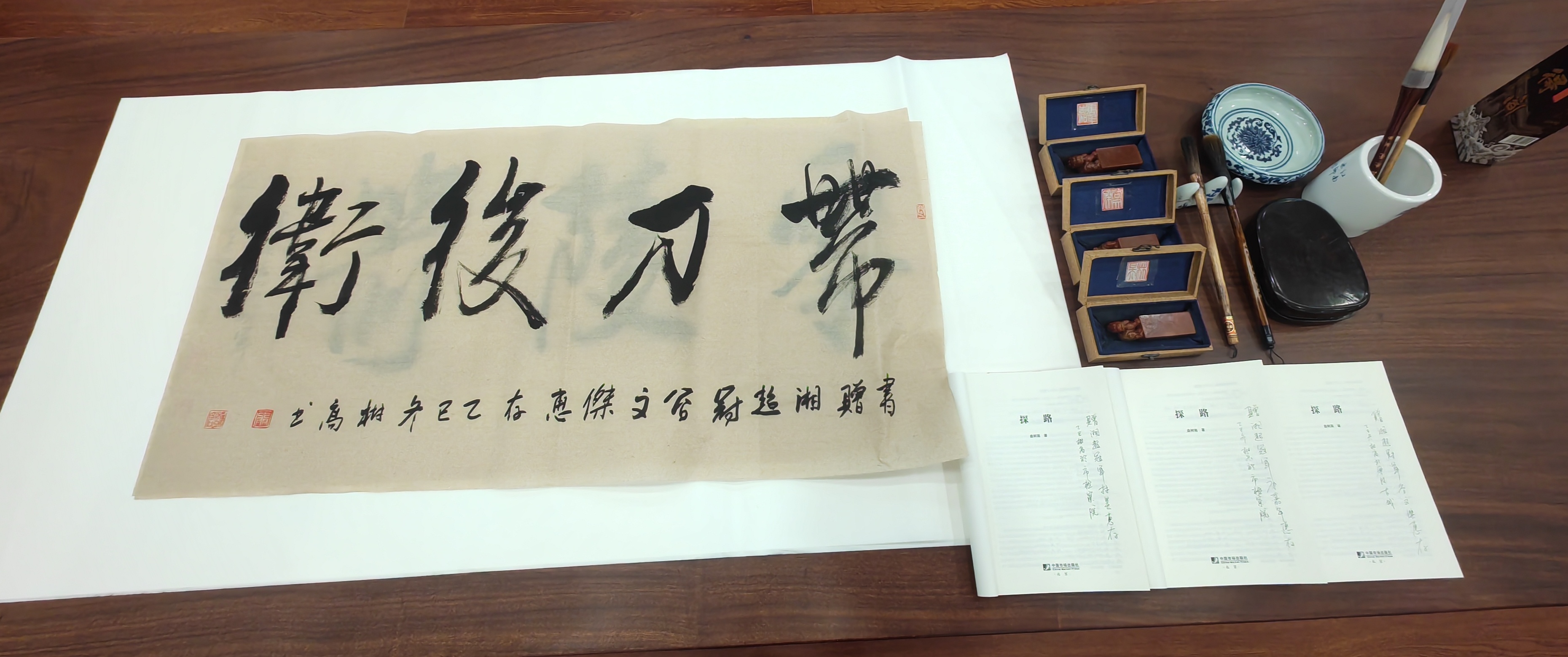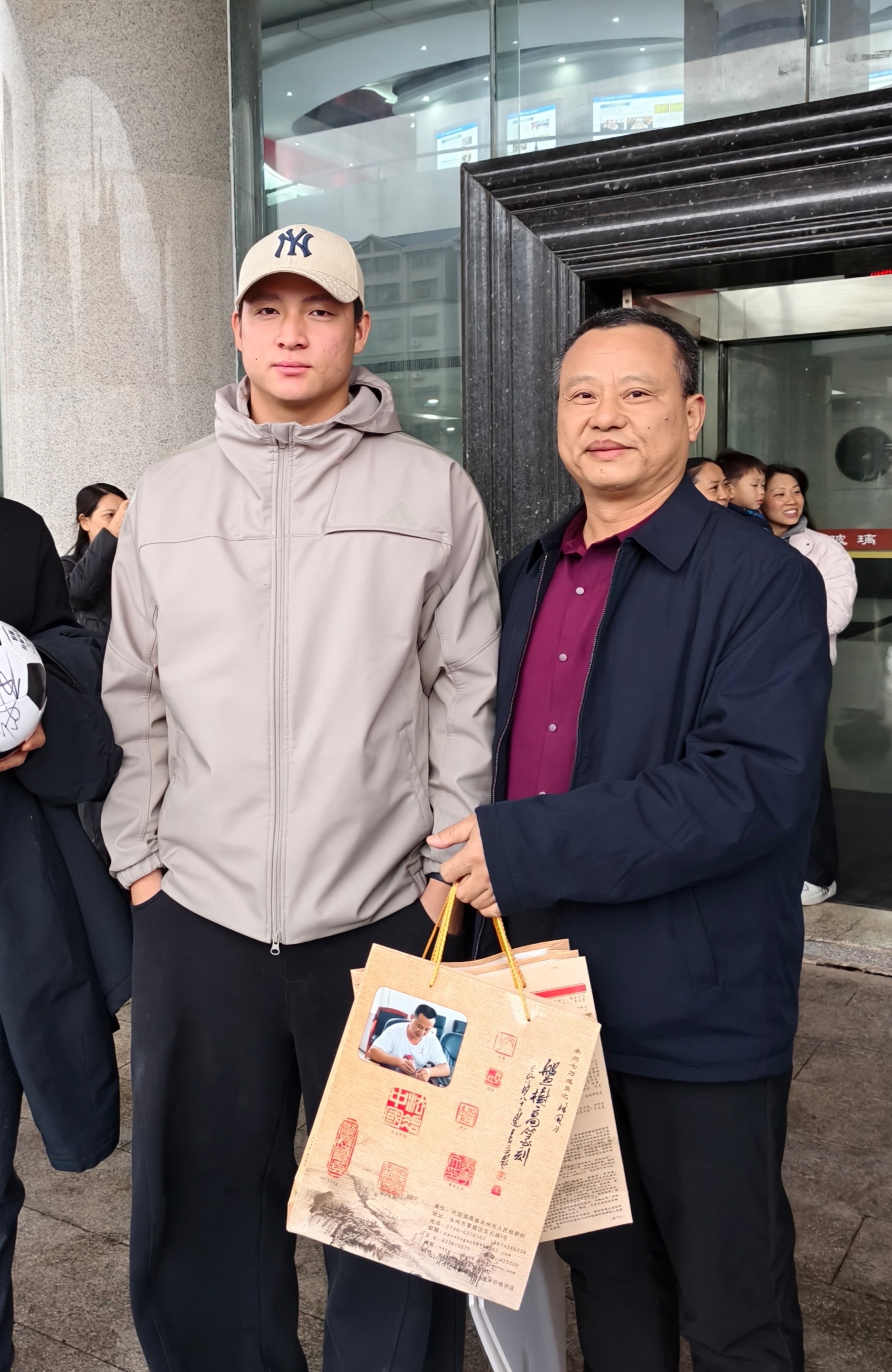 1月30日,湖南省永州市文联副主席、检察官文联主席盘树高向湘超冠军球员唐嘉年、林昊和谷文杰赠送红色革命历史题材《探路》长篇小说、篆刻名章和“永州门神”“带刀后卫”“零陵箭”书法作品,展现足球竞技魅力和永冲锋精神。盘树高以刀做笔,为冠军运动员篆刻名章,书写雅号,创作了10余幅湘超联赛主题篆刻作品,将足球和传统文化紧密结合,被永州潇湘国际大酒店、长沙、北京的一些企业家放大挂在显耀位置推广宣传,引起一定社会反响。此次赠送“冠军印”活动对于弘扬中华优秀传统文化和中华体育精神有着重要意义,将鼓舞和激励湘超永州健儿发扬永冲锋精神,在今年的赛场继续为家乡而战、为湘超争光。