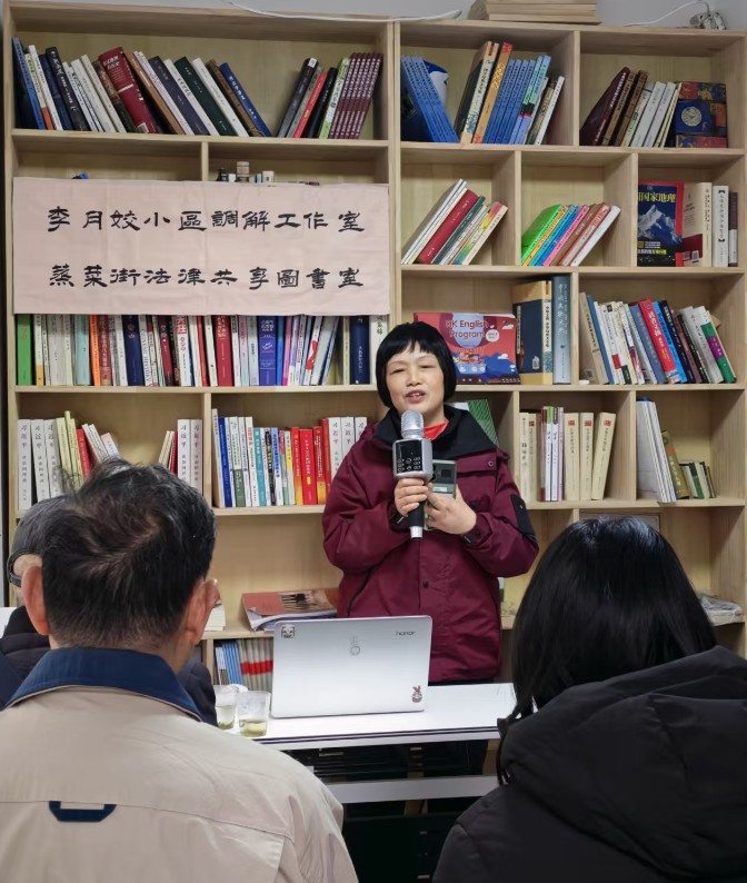 活动由五里牌社区蒸菜街小区党支部书记、蒸菜街法律共享图书室主理人李月姣主持。她在开场导引中介绍了活动的背景和意义,并感谢湖南湘行律师事务所律师等法律志愿者及小区党员群众的热情参与。