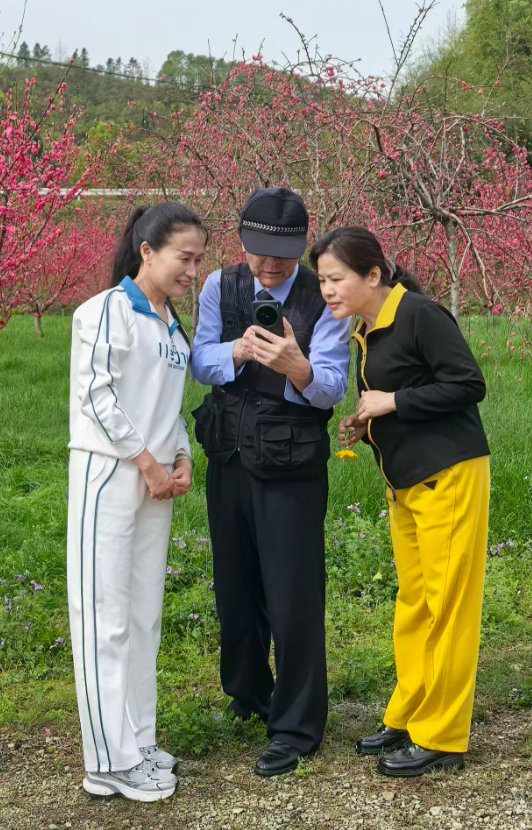资深会员谭志鸿扛着长焦镜头深入桃林,专注捕捉花瓣上的光线质感。他表示,早晨光线柔和,是拍摄花卉特写的黄金时段。陶力成与刘晓春选择杜鹃花丛,反复调整曝光参数,以应对红色花朵易溢出的技术难题。来自长沙市公安局的刘文武、候波则更关注“人在花中”的生动瞬间,抓拍游客穿行花径的自然神态。