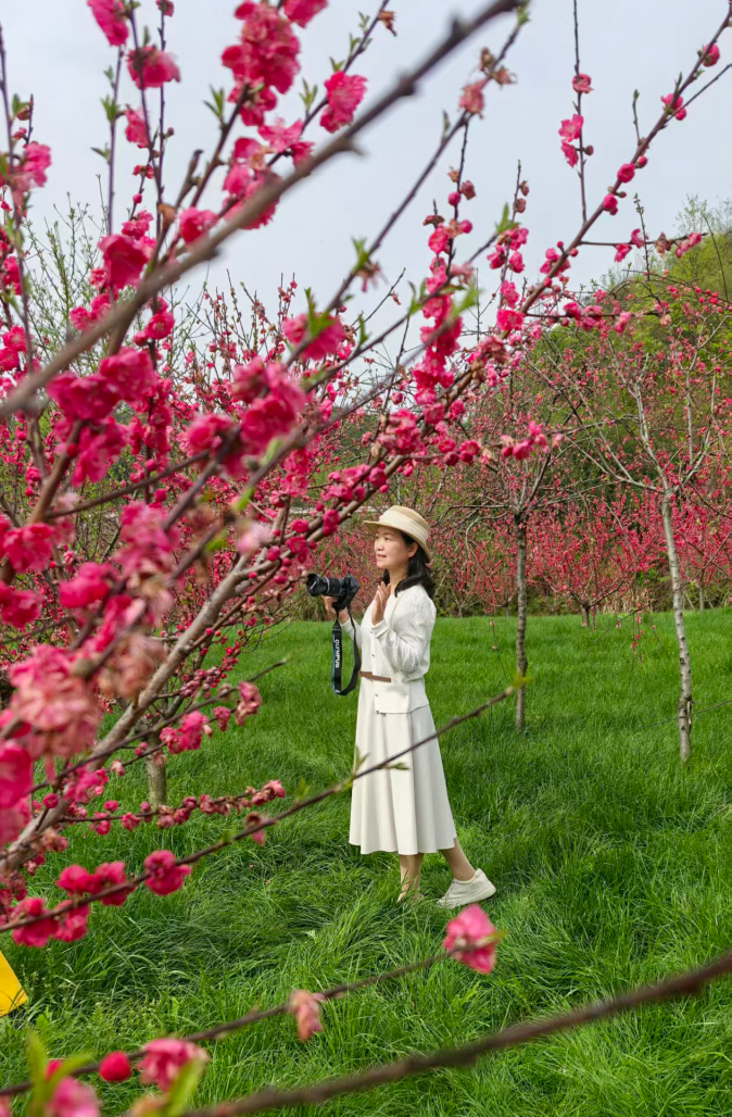 上午九时许,车队抵达七星桃花源。园区内杜鹃与桃花竞相绽放,远处青山如黛,近处花海如潮,构成一幅绚丽的春日画卷。会长饶力明简短动员后,20位会员分散进入花田,围绕“探索光影之美”主题自由创作。
