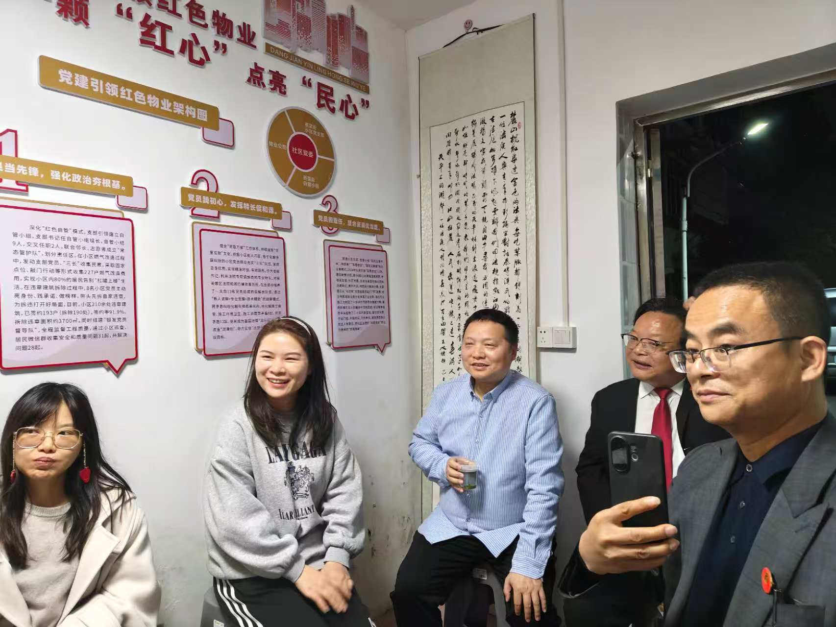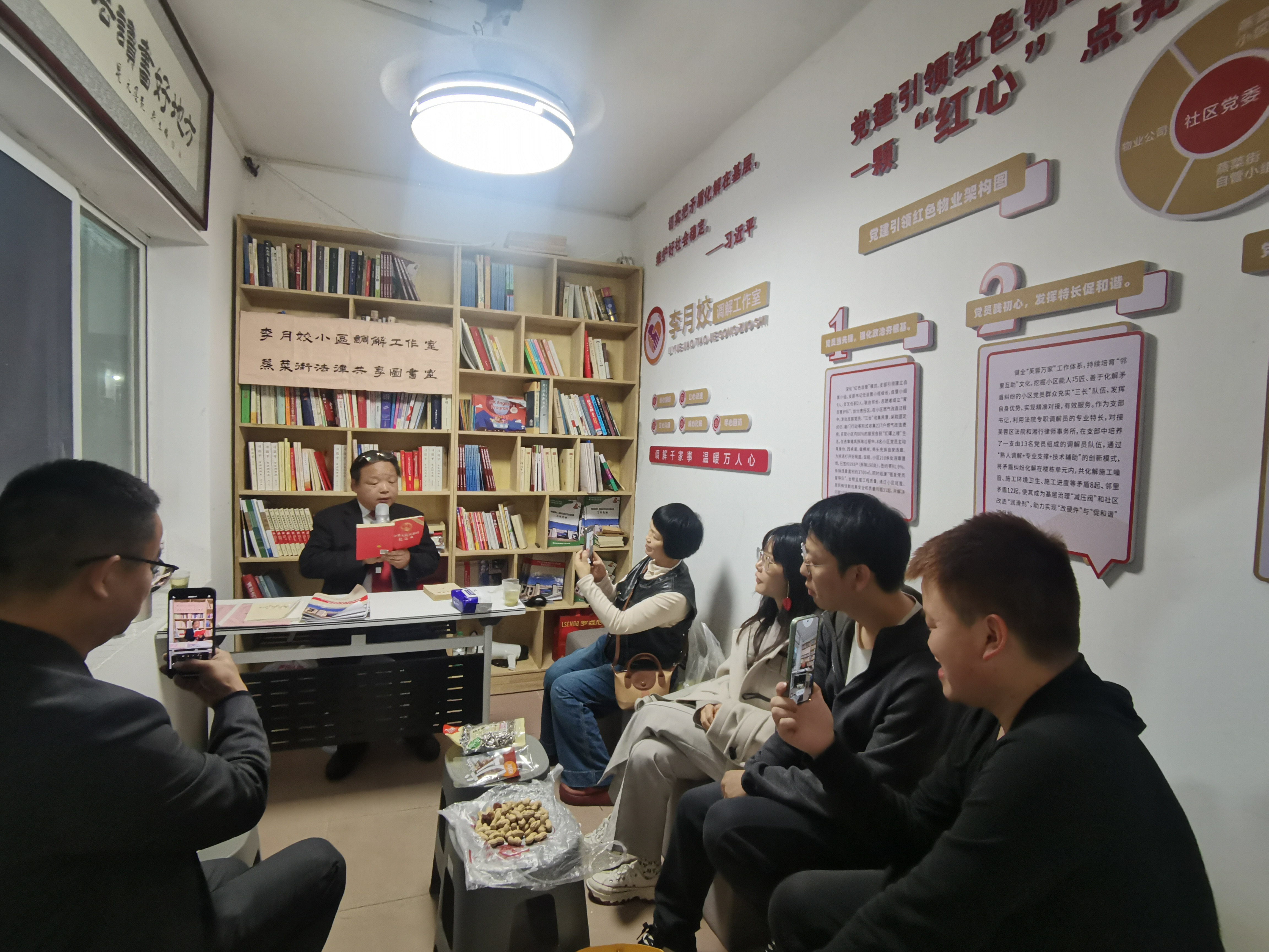 人间四月春光好,书香扑鼻润长沙。为庆祝第31个“世界读书日”,落实国务院《全民阅读促进条例》法规要求,进一步弘扬法治精神,浓厚全民阅读氛围,4月23日晚上8点,长沙市芙蓉区五里牌街道五里牌社区“蒸菜街法律共享图书室”成功策划举办一场别开生面的“朗读经典”沙龙活动。云梦山海﹒东茅街茶馆“文明之旅”看片团学员杨舜泗、欧阳婷、逍遥灵、斯黛、董兰芳、破局、钟建林等参加活动。活动由蒸菜街小区党支部书记、“法律共享图书室”主理人李月姣同志主持。